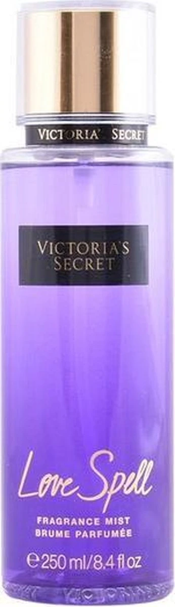 Victoria Secret Love Spell fragrance mist bevat een mix kersenbloesem en perzik.